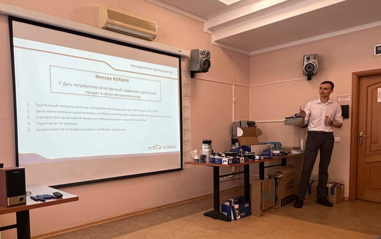 Технический специалист бренда KORWIN провел для представителей рынка послепродажного обслуживания специализированный обучающий семинар «Обзор товарных групп, технические характеристики и преимущества компонентов KORWIN».
